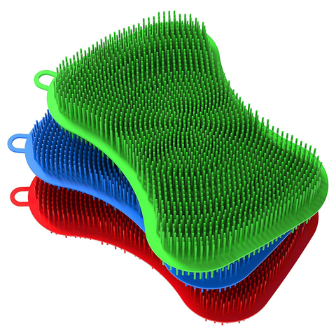 Siêu Thực Phẩm Cấp 3 Gói Silicone Món Ăn Bọt biển Đa-Mục Đích Nhà Bếp Làm Sạch Bàn Chải