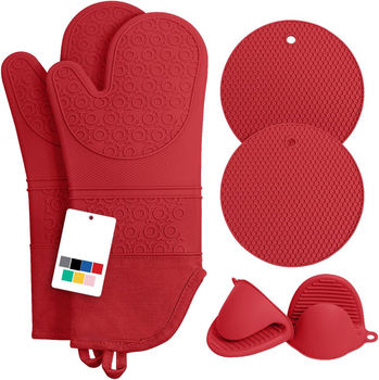 ชุดชั้นวางถุงมือเตาอบแบบยาวพิเศษถุงมือเตาอบซิลิโคนทนความร้อนพร้อมถุงมือเตาอบขนาดเล็กและแผ่นความร้อนไม่ลื่น